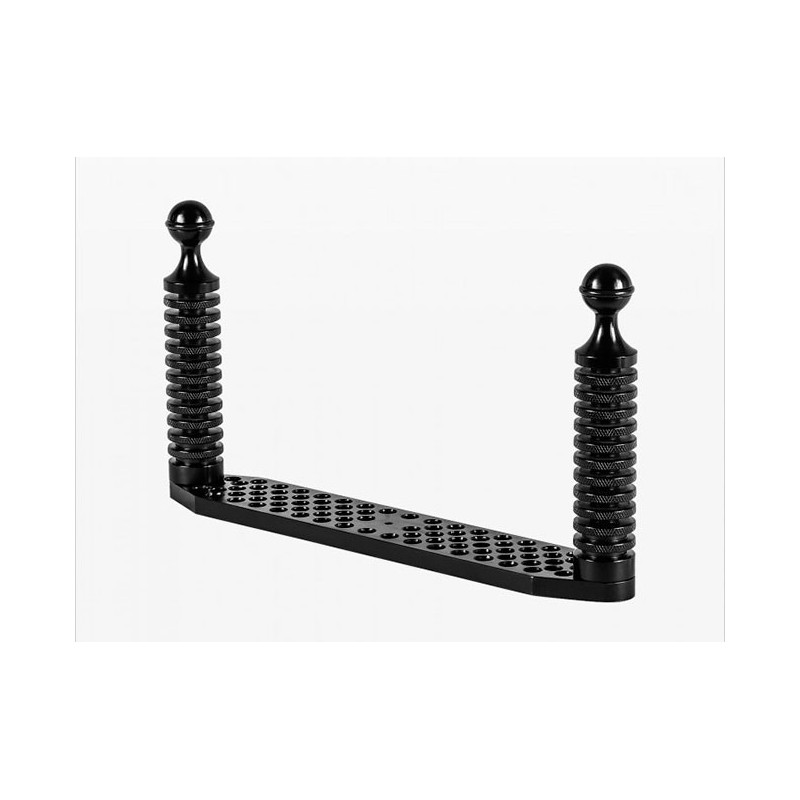 Camera base is made from anodised aluminum. Comfortable in use due to two easy-to-grip handles equiped with a ball adapter each, ready for attaching video lights or video arms.