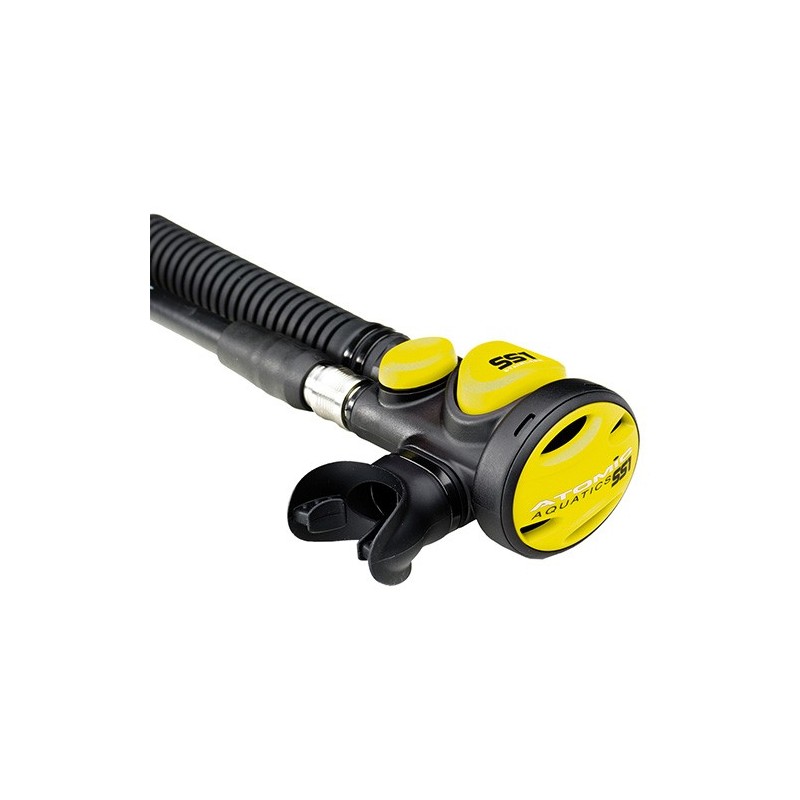 Since the SS1 breathes as easily as a primary, there is one important difference in air sharing with an SS1 over a standard octopus. The diver switches from their primary to breathing from the SS1, then offers the primary to their buddy. This is for two important reasons. Since the SS1 is attached to the shorter BC hose, it will not easily reach the out-of-air diver. And the SS1 diver can also keep buoyancy control and maintain control of the situation.