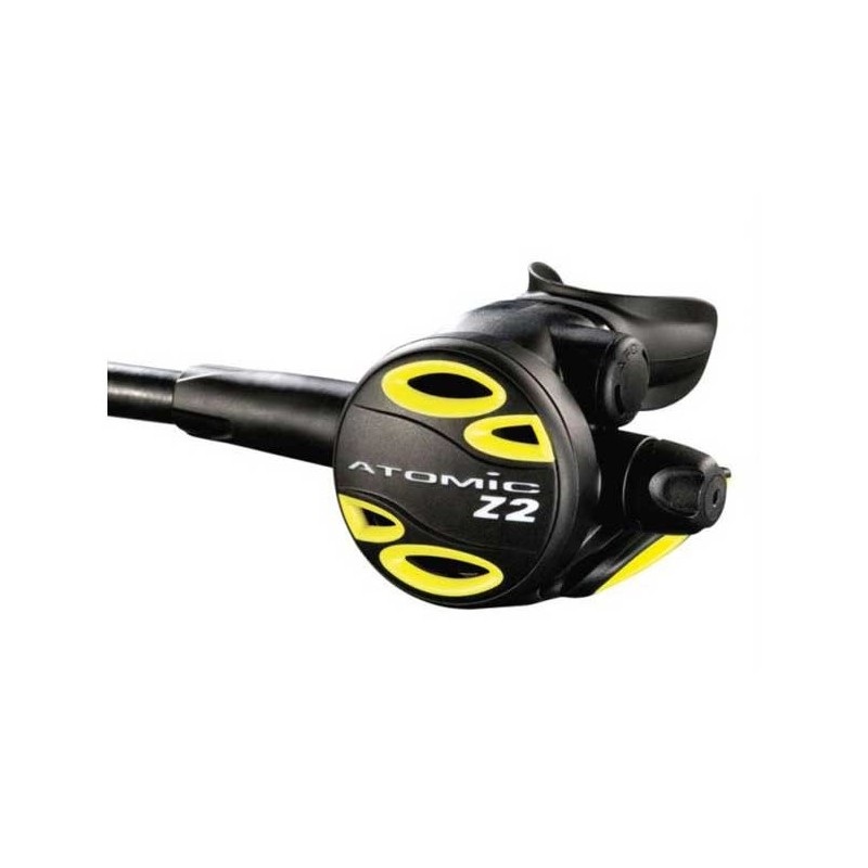 Atomic's most compact and economical safe second, the Z1 shares the same high performance breathing characteristics and patented design features found in our more expensive models. The second stage features the exclusive Atomic AFC (automatic flow control) for natural effortless breathing at every depth without having to make external adjustments. The critical metal components of the demand valve (lever, orifice and spring) are all made of titanium and are completely corrosion proof. The demand valve housing is machined of brass and plated with an exotic Zirconium plating that outlasts conventional chrome plating by 3-4 times. The combination of high quality materials and the patented Seat Saving Orifice Design result in a regulator that is extremely reliable and trouble-free even in the harshest conditions. A manual override adjustment knob is provided to reduce the regulators sensitivity during entries or exits. Std. with 32" hose