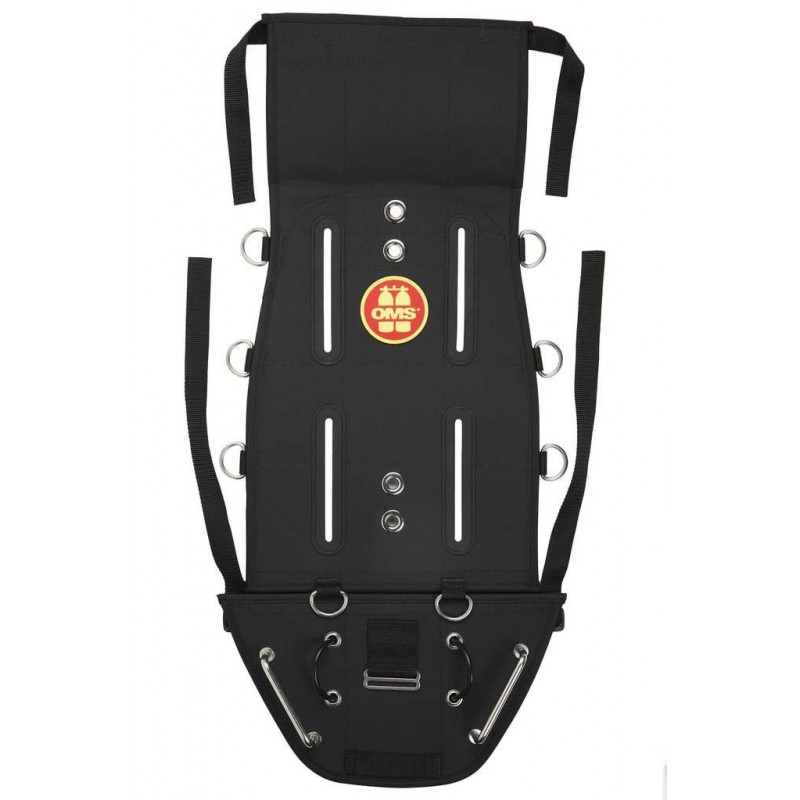 The OMS Sidemount Tech or Rec adapter makes your own Harness, backplate and wing into a full sidemount system! It is suitable for use with any harness, backplate, IQ Backpack and OMS Performance Mono, Deep Ocean or Tesseract Wings. The adapter is attached to the backplate with book screws (not included) and crotch strap, holding it securely in place and ensures that the wing does not fold up like a "butterfly". Rear lower handles to attach bottles and a center holder for canisters as well as many useful D-rings ensure that all accessories find their place! A great system for a low-cost entry into sidemount diving!