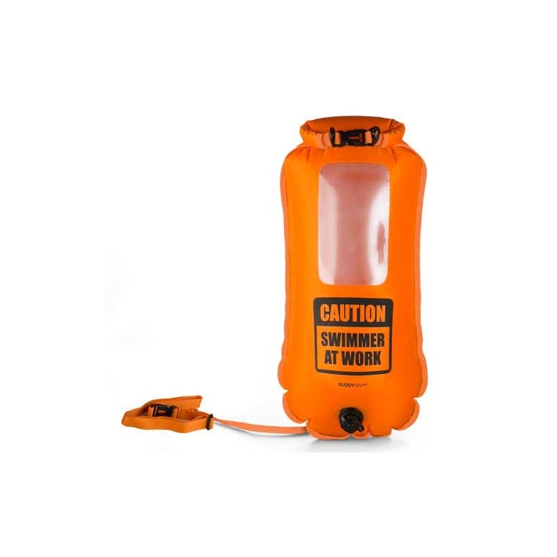 BUDDYSWIM smartphone drybag buoy is designed for safety and storage for open water swimming with aditional window taht allows your phone or GPS to visible. The bright orange color keeps you visible to boats and the double airbag system allows it to be used as a safety device should you need to rest. It can also keep dry your valuables.