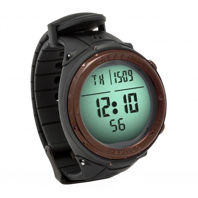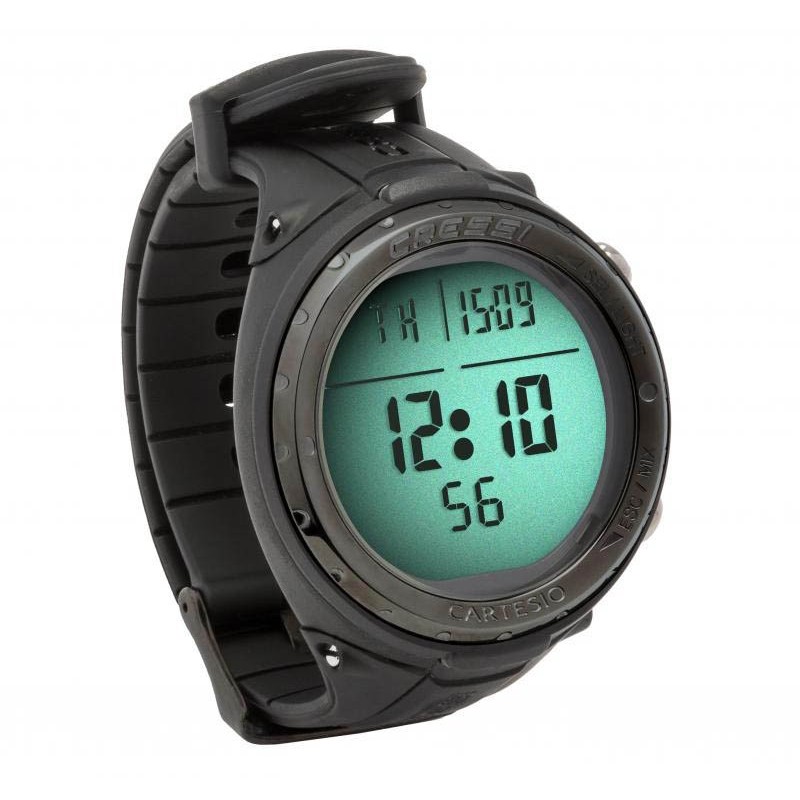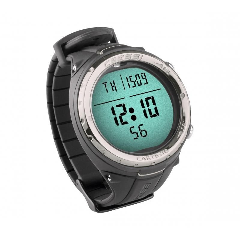 Cartesio has a diameter of only 48mm and a high contrast display of 35mm. It is a scuba diving/apnea watch-computer of extremely reduced dimensions. It is also an ideal watch for other underwater activities, thanks to the deactivation option of the “dive” functions that avoids unnecessary alarms ringing while you’re snorkelling or swimming.