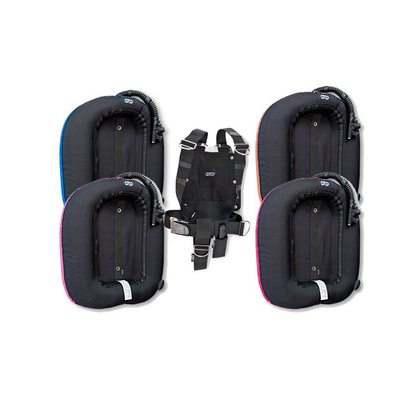 DTD twin tank set consisting of the Stream Ring Stripe wing, DIR type continuous belt harness and steel backplate in 3 mm thick Choose your color wing from the drop-down menus.