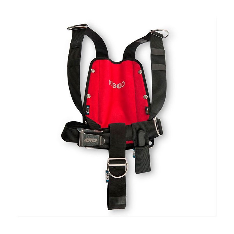 - stainless-steel 3 mm plate- PA harness- stainless-steel D-rings and stoppers- stainless-steel buckle- complete crotch strap- buoy pocket- pocket with knife- bungees on the strap