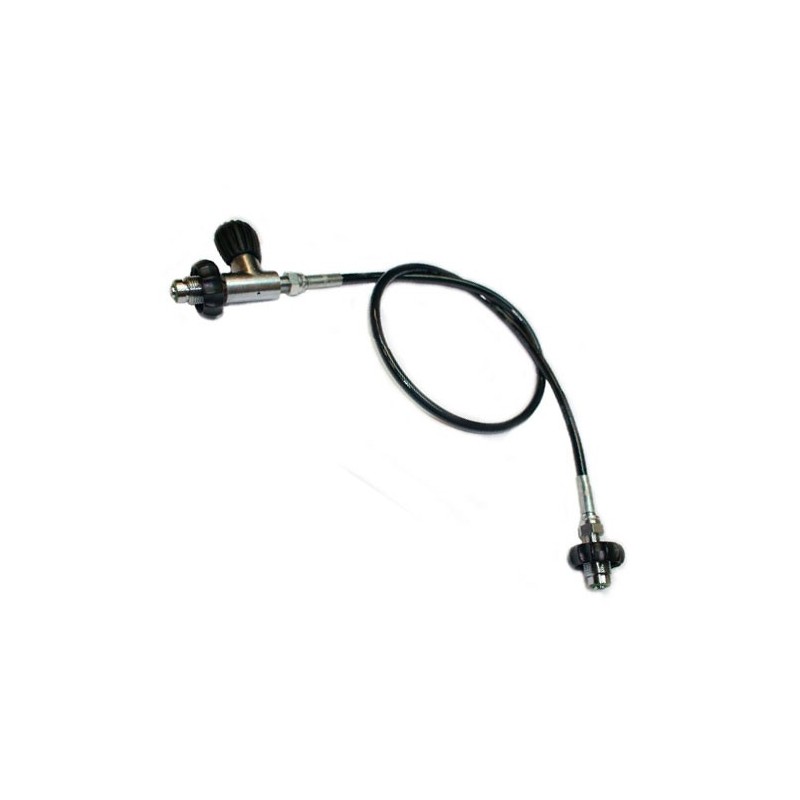 Constructed of high pressure 5000 psi (350 bar) hose and made to equalize or fill one tank from another. Set up to equalize from the tank with highest pressure to the tank with the lowest pressure. Comes with bleeder valve to safely detach and ready to help make your scuba diving safe and fun.