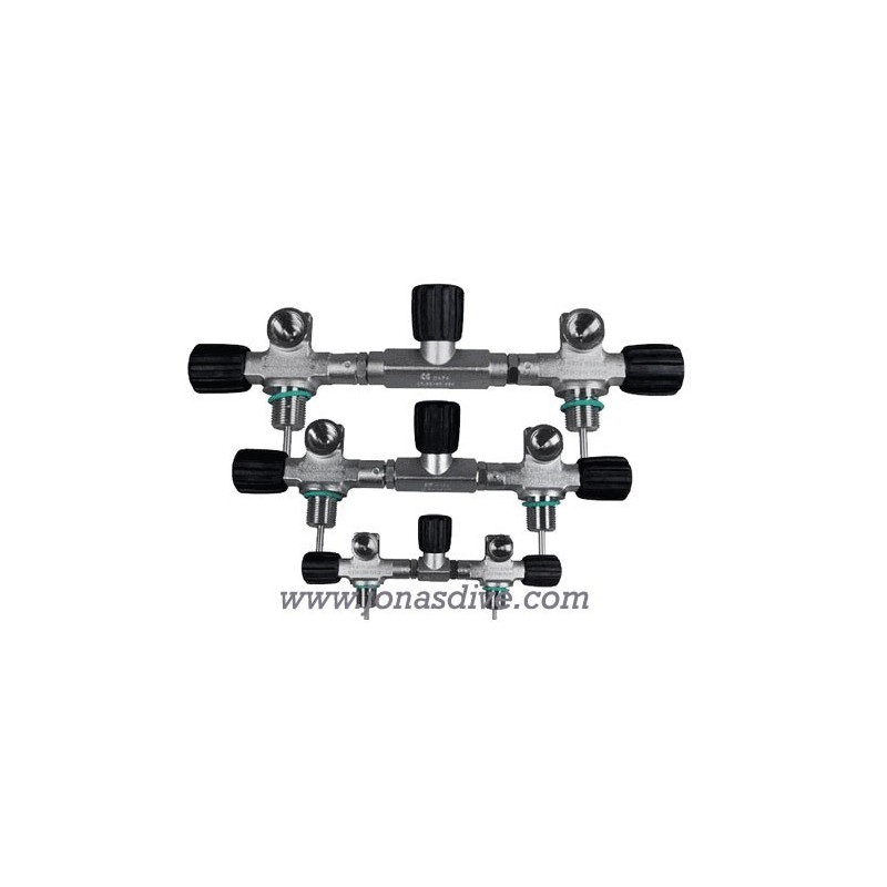Oxygen Clean G5/8" 300Bar twin tank valves with isolation.