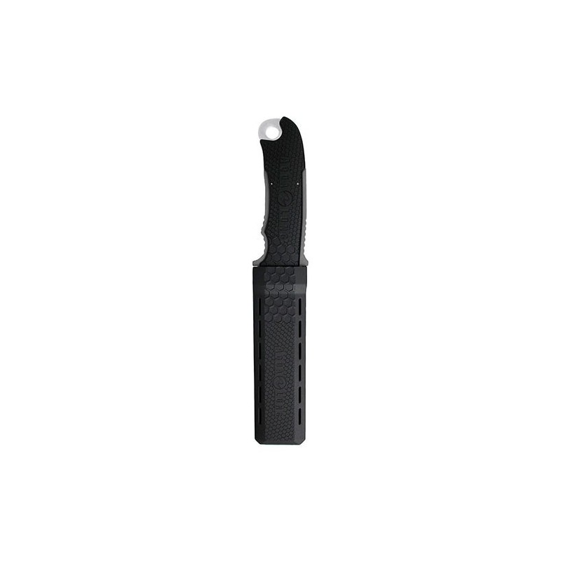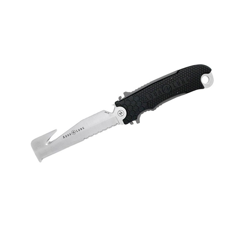 Aqua Lung Squeeze Lock dive knives are preferred by divers around the world. The patented Squeeze Lock design allows the diver to securely lock the knife in its sheath while offering a quick and easy release with a simple squeeze of the handle. The Big Squeeze knife has a 10.8cm (4 ½”) blade, is 24.2cm (9 ½”) long overall and can be easily mounted to integrated connection points on most Aqua Lung BCs, also easy to mount to any belt or cincha part.