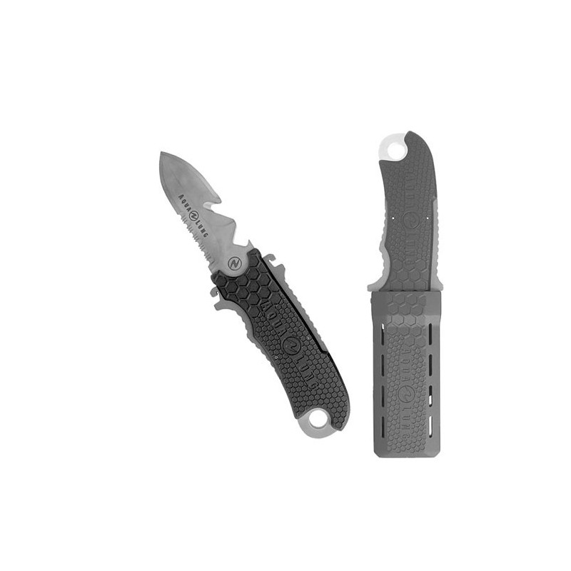 The Small Squeeze dive knife is the perfect little knife. It's small, compact and compatible with most of our BCs, so you won't even notice it's there, but you'll be happy you have it when you need it. A patented locking mechanism keeps the knife secured in its sheath waiting to be used at the squeeze of the handle.