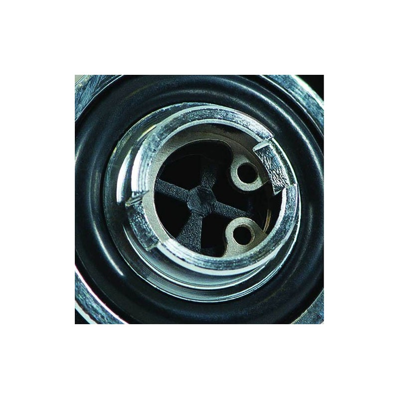 The air bypass tube delivers air to the mouthpiece creating a swirling vortex with a low pressure area in the center that keeps the diaphragm down during inhalation, for very sensitive and easy breathing at all depths.
