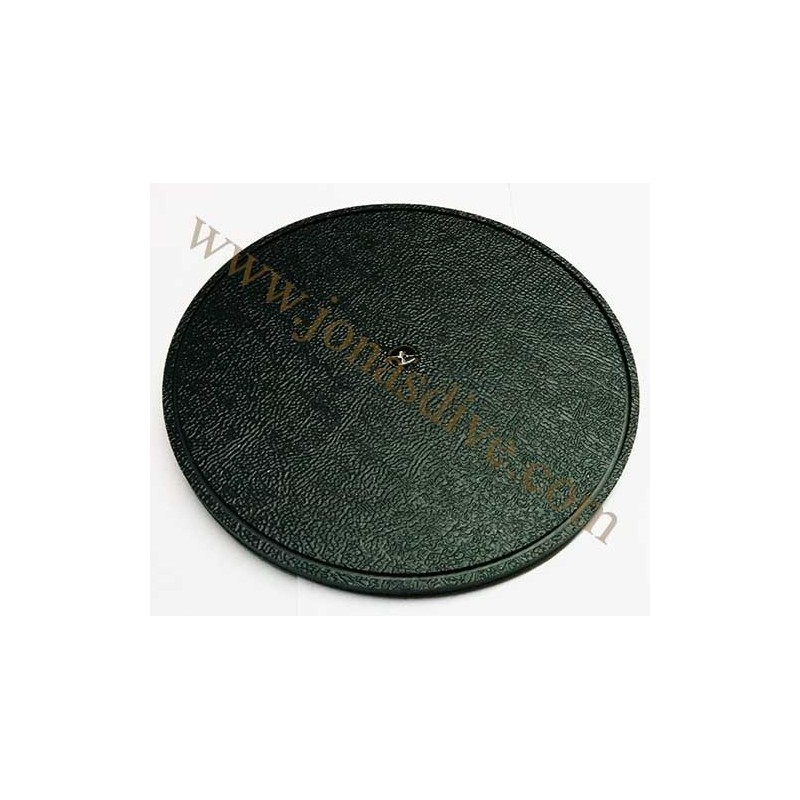 It is made from unbreakable plastic with a neoprene seal on the under side and a patterned finish on top.