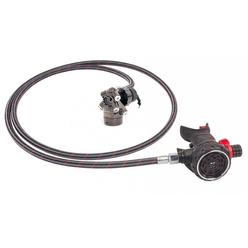 The Airstream Evoque Regulator combines the Airstream First stage with the Evoque Second stage to make one of the highest performing regulators on the market today. The Airstream Overbalanced and Environmentally sealed first stage is made through a forging process allowing optimized hose routing. The low pressure ports are angled 30 degrees down and 23 degrees out to allow hose routing directly over the shoulders. The high pressure ports are angled down 45 degrees to keep gauges closer to the divers hip and body. This process also allows air flow to be channeled through larger passages combined with the overbalanced diaphragm creates the lowest Work Of Breathing effort (WOB) 0.80 Joules per liter in all conditions and temperatures. Built into the front of the body of the Airstream is a forged heat transfer keeping warmer air inside and forcing cold out allowing this regulator to perform in the coldest conditions where others fail. The Evoque Balanced Adjustable Second stage is compact and designed to give superior quality of breathing to any diver. The balanced diaphragm is securely held down by a ring and inner cover that screws down below the front cover and purge button. The exhaust has a small hinged door allowing easy access to the diaphragm to clear any debris. This exhaust used with our Tattoo Mask or similar will allow all the exhaust gas and bubble to pass its side and not in front of the mask. The adjustment knob has a clutch system when turning clockwise to avoid over torqueing. Next to the adjustment knob is a large pre dive and dive venturi switch easily adjusted with or without any size glove. The inner valve is made of stainless steel parts providing excellent breathing in any environment or temperature. Octopus available with a high visibility yellow colored cover.