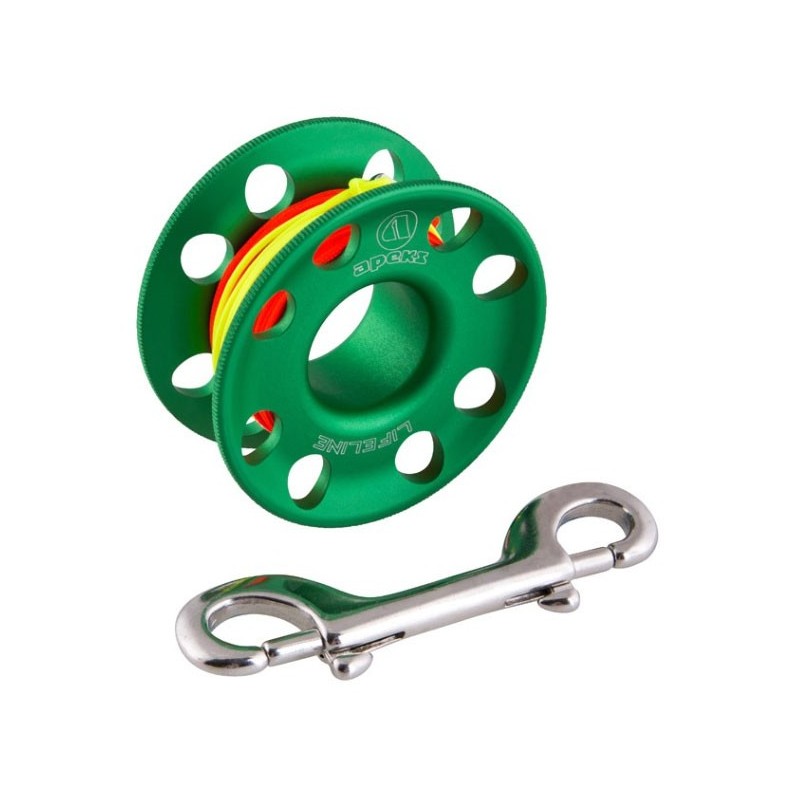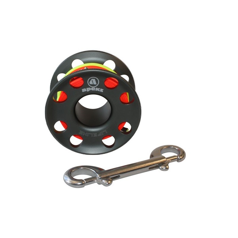 Inspired by technical diving and versatile enough to be used in a range of diving applications, the new LifeLine spool from Apeks features easy to grip flared sides to improve deployment and winding. Made from tough anodised aluminium alloy with high visibility line for low light conditions and with a super tough leader and swivel as standard, the Lifeline comes in three sizes and colours and is complemented by a range of line markers and cookies. Available thre...