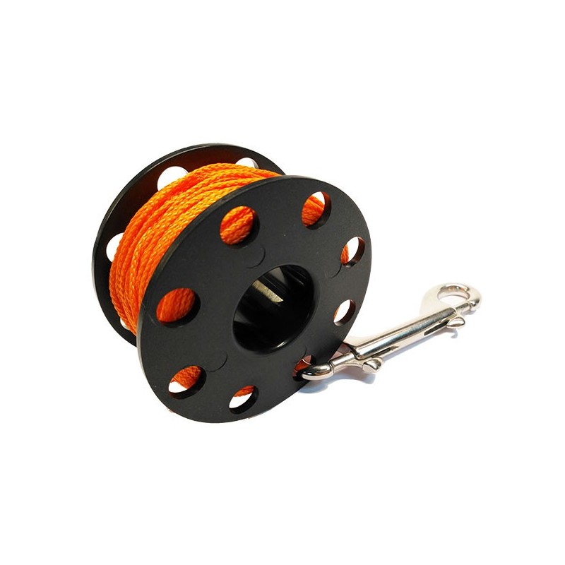 Spool thread Spool of generous size with double orange wire and stainless steel carabinerReel measurements are: 10cm X 4.5 cm and have a central hole diameter of 3.5 cm generous