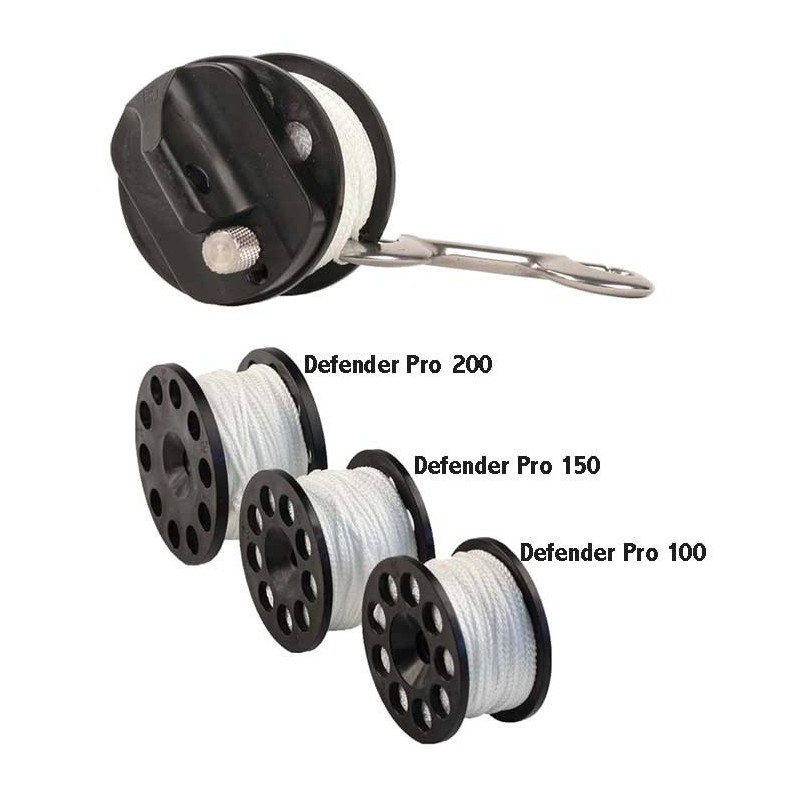 Halcyon Manufacturing is well known for guideline device innovations, having pioneered some of the most unique designs in technical diving. Now we are pleased to announce the dawn of a new generation of guideline devices. The new Halcyon Defender Pro series of guideline devices expands upon the time tested utility of Halcyon Defender spools by providing enhanced flexibility and unique operational advantages. The Defender Pro series provides a wide range of valuable features: