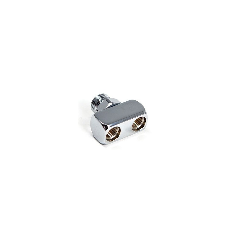 • Allows the attachment of two low pressure regulator hoses (first stage ends)• One 9/16-18 male inlet to two 3/8-24 female outlets• Chromed brass construction• Low pressure only
