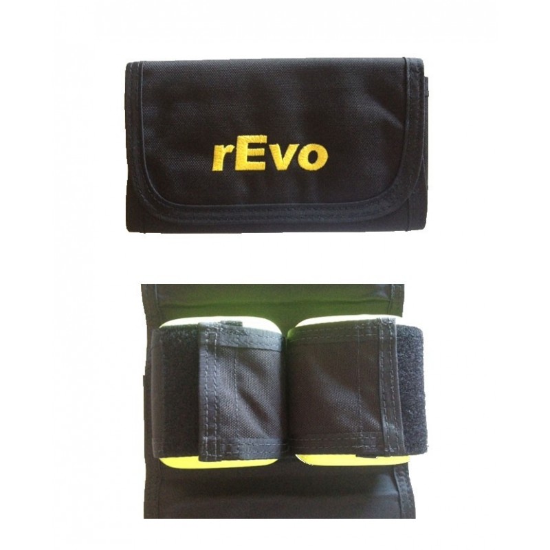 The rEvo weight pouch can be attached to the top protection of any rEvo. The weight pouch holds 2 weights perfectly, fixed with a dual flap/Velcro system. This way the weights cannot move at all.