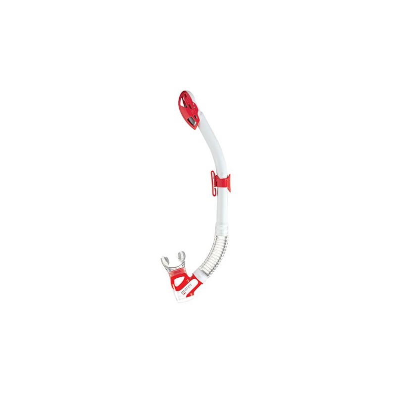 A 100% dry top snorkel which offers great breathing comfort thanks to a large bottom housing with increased volume. Including a sliding snorkel keeper and silicone hose and mouthpiece. Available in 8 colours.