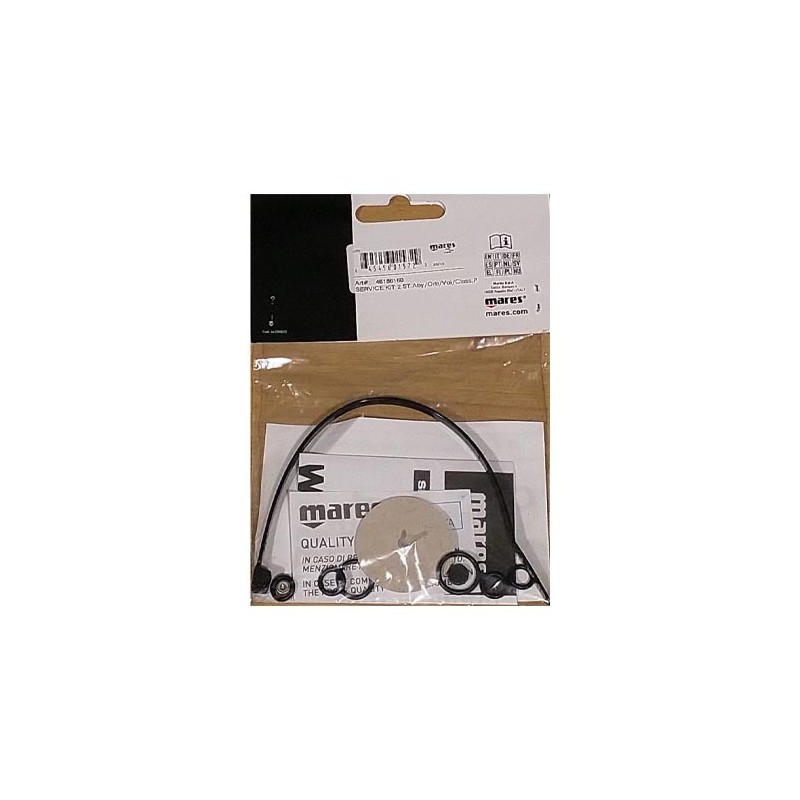 Maintenance kit for Mares Abyss, Orbiter, Voltrex and Classic P second stagesThe kit contains all the O-Rings, the exhalation diaphragm, the valve retaining thread, a mouthpiece flange and the valve seat.