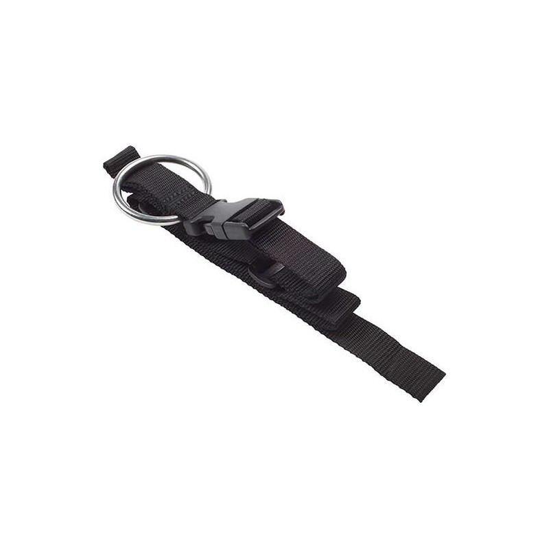 1 ”(2.5cm) crotch strap with quick-fit clip closure and aluminum ring.