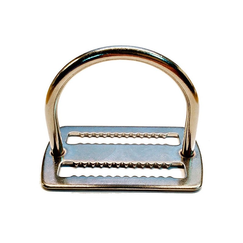 Welded/fiexed D-Ring ring with a greater height than standard (44 mm in this case) for 50 mm cinch straps.