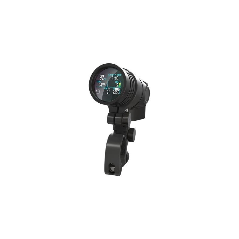 The Near Eye Remote Display dive computer from Shearwater Research incorporates a powerful feature set, easy to understand menus, easy to read full color display, and a special optics and mounting system that projects the equivalent of the Shearwater Perdix-AI as a heads up display directly in the eye of the diver.