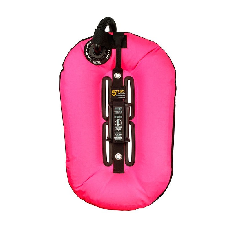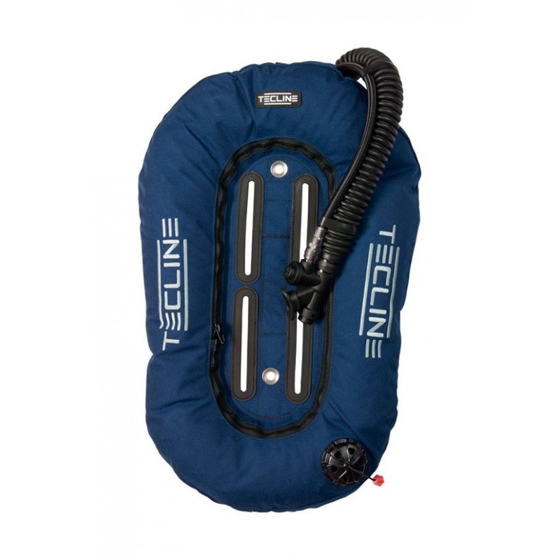 Double shell wing having a water displacement 13, 15 or 17 liters  for a single cylinder. Oval shape for easy use in any position, allowing air to circulate freely. Extremely durable and soft outer shell is made of special, not faded Havy Duty Nylon. The integrated adapter allows you to use a single cylinder.