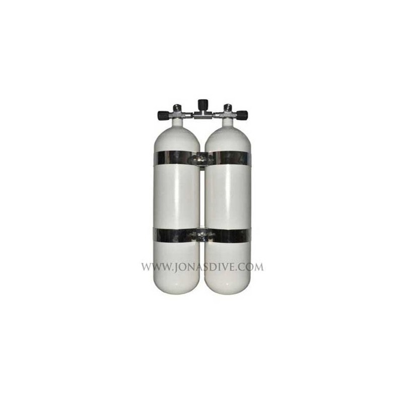 Twinset Steel Cylinders 10 liter, 300 bar, DIR Style - stainless steel tankbands and rubber knobs