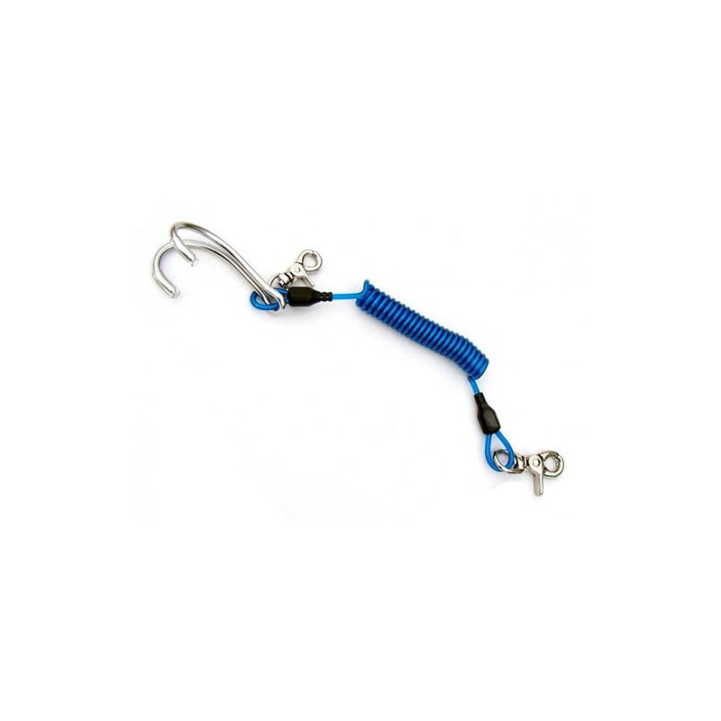 Extensor con ánima de acero inoxidable. Mosquetón en un extremo y gancho para anclaje al fondo para buceo con corrientes.