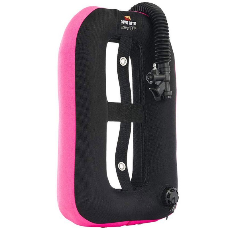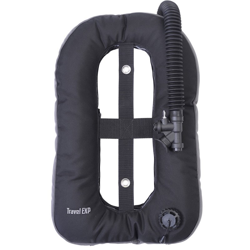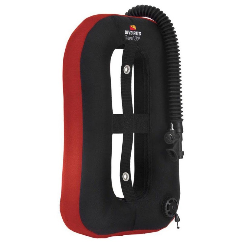 El modelo Dive Rite EXP con válvula, dispone de una válvula de vaciado instalada en el codo, al estilo de los jackets convencionales (tirando de la tráquea).