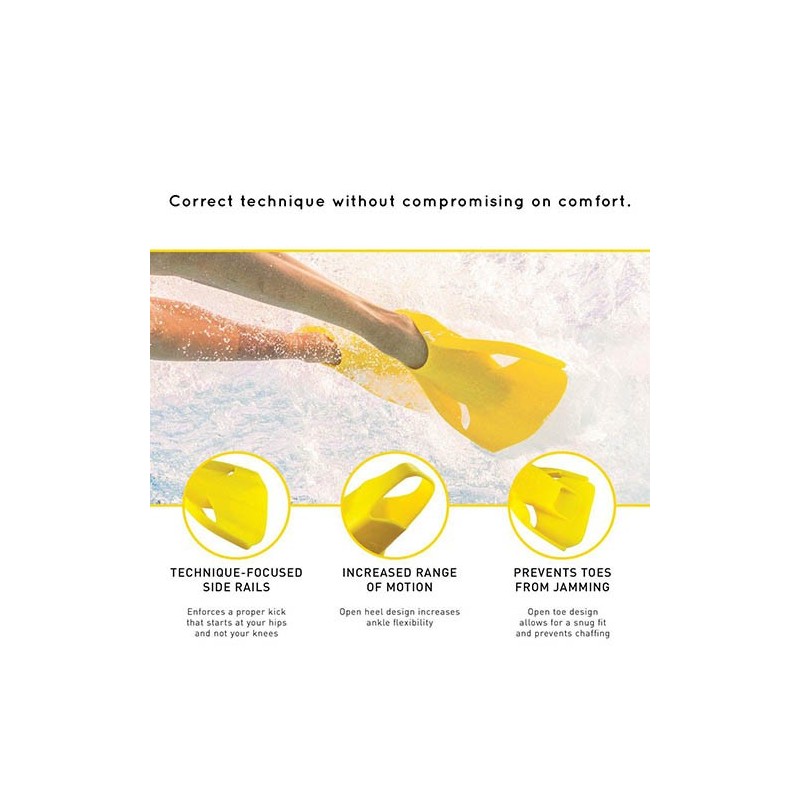La combinación de la utilización de silicona 100% y Smart Fin Technology mejora el bateo de pies a alta velocidad, reforzando el trabajo cardiovascular y activando los grupos musculares involucrados en la propulsión de la patada.