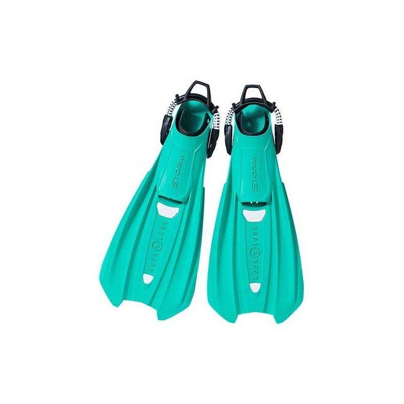 Las aletas Storm son las aletas calmantes (sin necesidad de usar escarpín)  ideales para viajar. Hechas con Monprene®, un material de fabricación único que confiere durabilidad y resistencia a la vez que mantiene un peso excepcionalmente ligero, justo lo que el buceador estaba buscando para sus viajes. El innovador diseño del calzante tiene todas las prestaciones de una aleta “full pocket” en cuanto a versatilidad, y de una de talón abierto en cuanto a tamaño. Está disponible en una gama de 4 tallas desde junior hasta adulto.