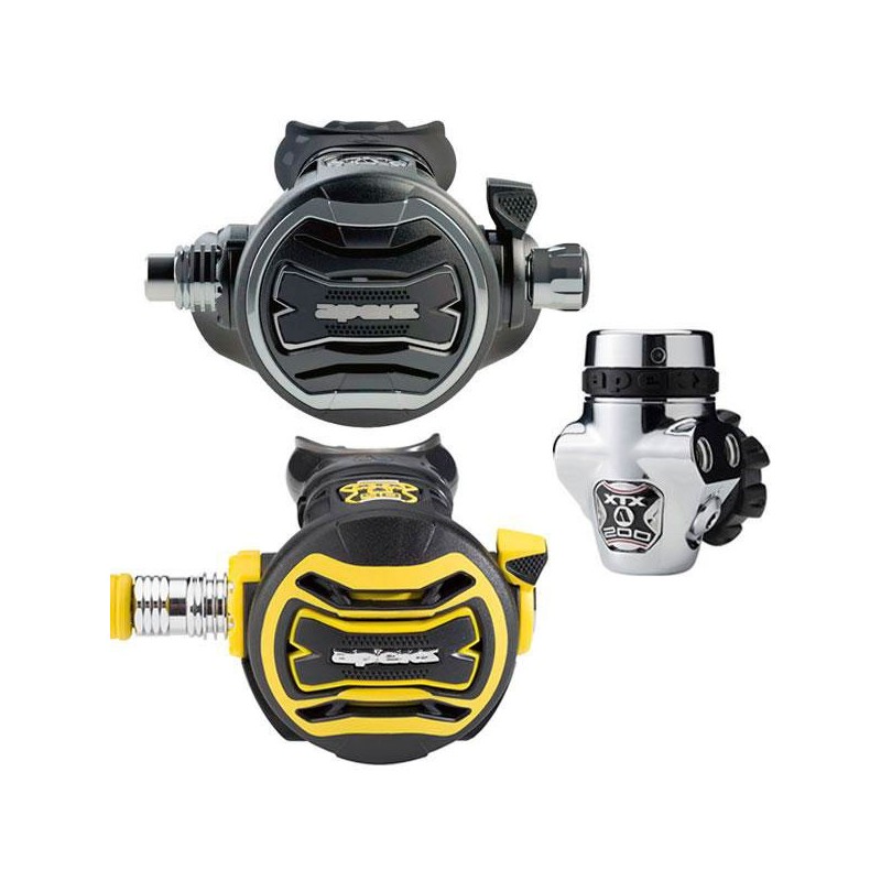El XTX Tungsten ha sido realizado sobre la base del XTX 200 pero con sus propias y únicas características. Es protegido con un ultimo toque de PVD durable ( Physical Vapor Deposition). Este último toque hace que sea todavía más resistente que reguladores tradicionales. Está constituido por una fuerte concentración de Titanio, Zirconium y Cromo). El resultado además de ser bonito también protege su regulador de las agresiones clásicas del buceo.