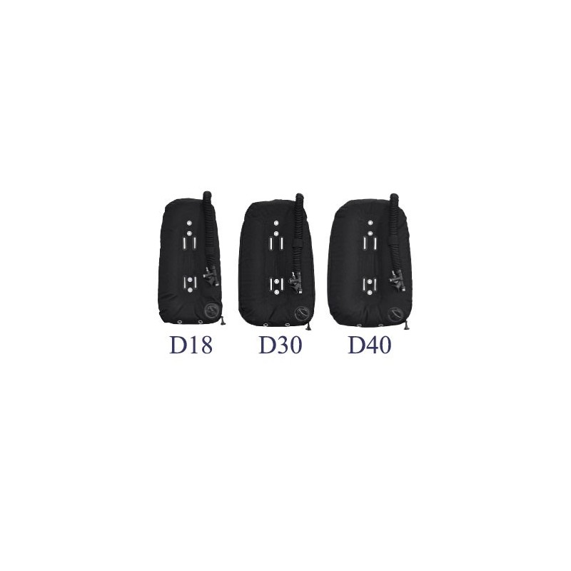 Los nuevos modelos de alas apeas WTX D18, D30 y D40 se han diseñado específicamente para ser utilizadas con mono botellas. Se les ha conferido un diseño estrecho y plano a la espalda del buceador para no ocupar espacio en esta parte y dotar de mas comodidad al conjunto. Asimismo en la parte trasera se le da un diseño con vistas de abrazar a la botella y dejarla lo mas firme posible.