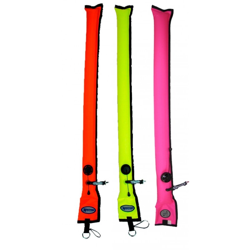 Las boyas de emergencia y señalización Halcyon montan el sistema No-Lock® (válvula unidireccional anti enganches) para el inflado oral o vía latiguillo inflador. En el caso del latiguillo inflador, las válvulas cuentas con un sistema de seguridad que imposibilitan el enganche del sistema de conexión rápida de los latiguillos de inflado, eliminando de esta manera la posibilidad de que la boya nos arrastrara a superficie.