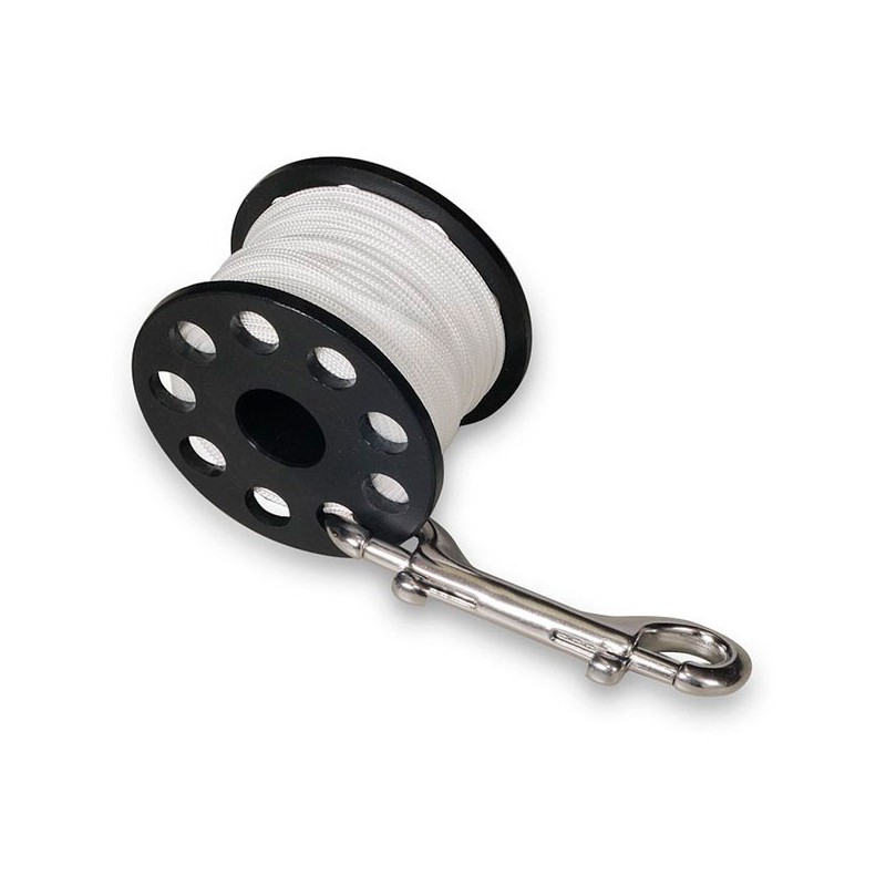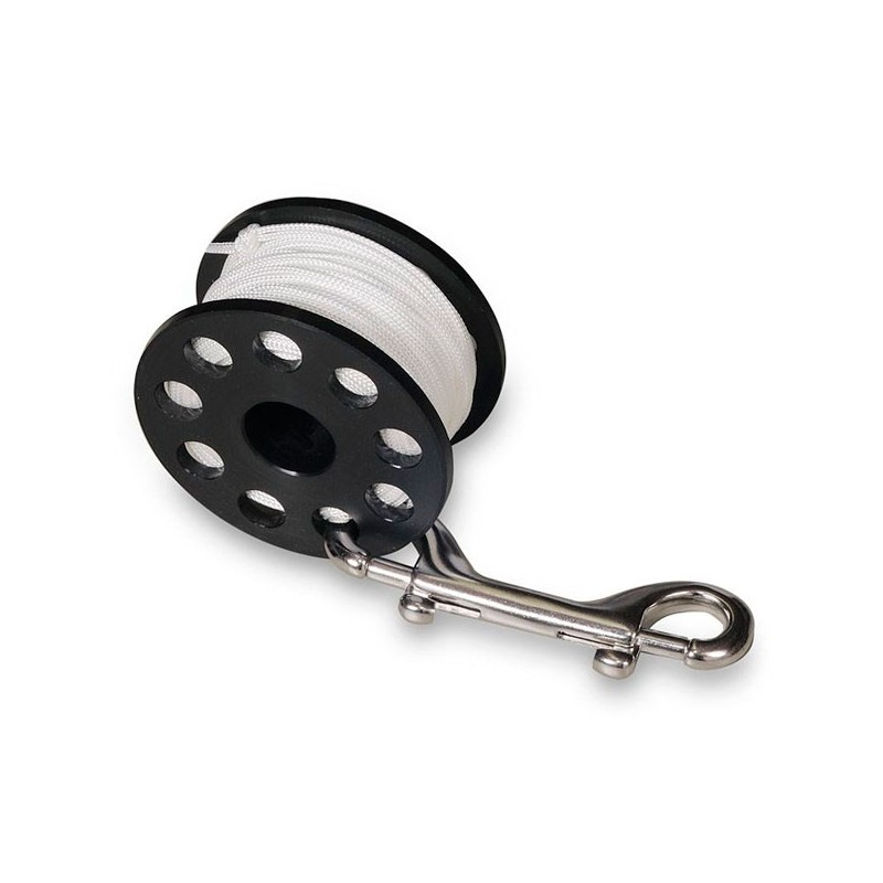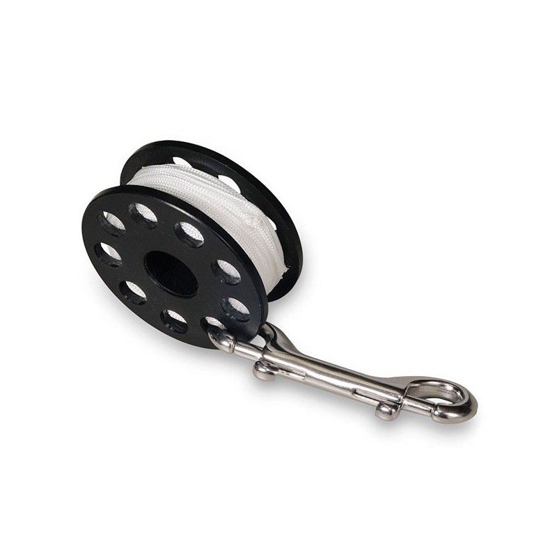 CARRETECarrete de seguridad y/o descompresión.La bombo está hecha de una sola pieza de material Delrin. Puede ser utilizado como carrete para el lanzado de boya o como carrete de seguridad. Mosquetón doble en acero Inox.