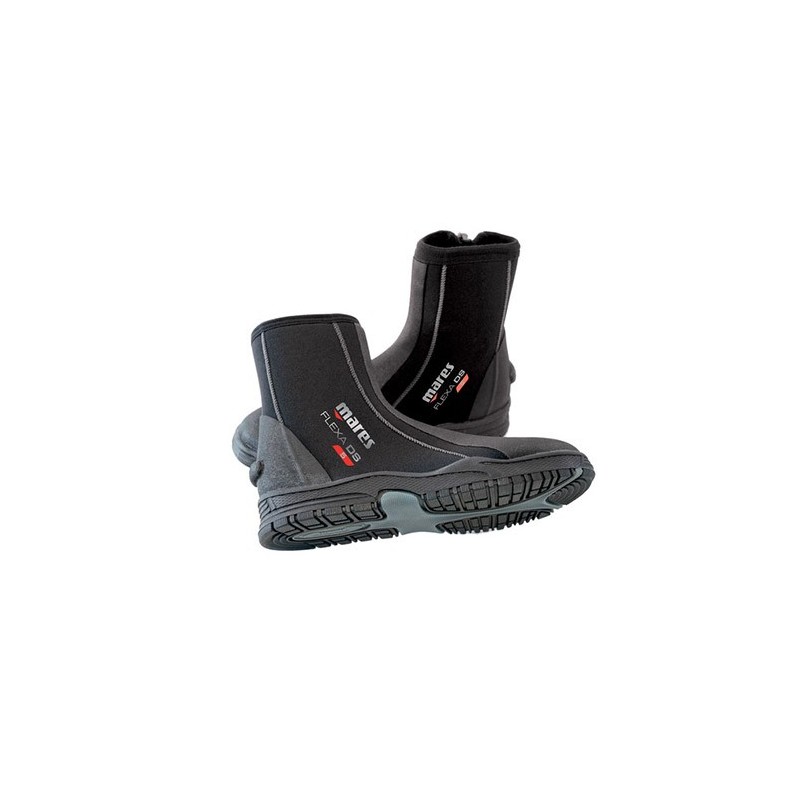 Los escarpines Flexa DS Dive de Mares están fabricados en neopreno resistente con una suela dura de goma para un agarre más seguro. La resistente cremallera permite ponerlos y quitarlos de manera fácil y evita que entre agua.