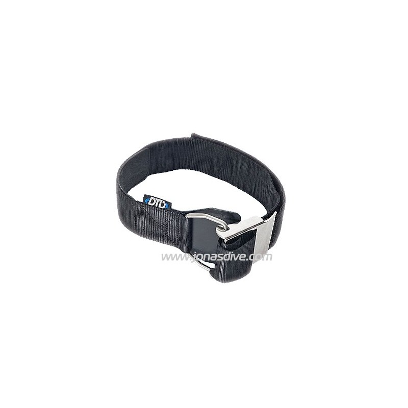 Cincha porta botella DTD indestructible. Formada por una cincha con un equilibrio entre dureza y maleabilidad perfecta y una hebilla y anilla fabricada en Inox AISI 316. La cincha tiene por la parte interior una banda antideslizante y justo debajo de la hebilla dispone de un protector específico para evitar marcar la botella.
