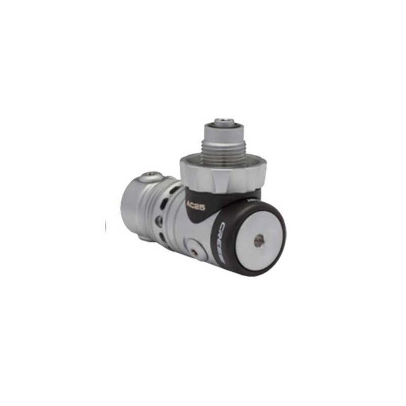 Sin duda alguna una 1ª etapa que jamás debería de haber salido de catálogo. La nueva Cressi AC25 no esconde sus raíces, de las cenizas de la antigua AC10 y totalmente renovada, Cressi nos presenta la nueva AC25. Una 1ª etapa que satisfacerá las necesidades de muchos buceadores que, o bien ansiaban una etapa de Pistón compensado, o bien precisaban de una etapa que nos ofreciese un enrutamiento exquisito para bibotella. Gracias a su 5º puerto axial, la configuración de latiguillos es limpia y sin curvas que entorpecen y maltratan los latiguillos.