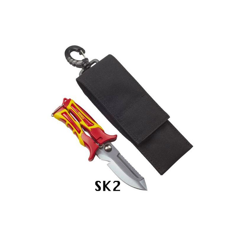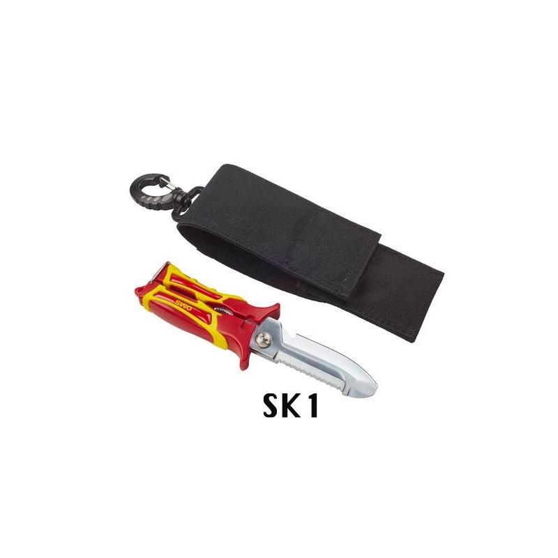 La punta de la cuchilla está opcionalmente disponible, bien con una punta redondeada (modelo SK2) o con la punta afilada (modelo ,SK1). La combinación de cuchillo / cizal OMS se entrega en un práctico bolsillo de nylon que lo hace muy fácil de guardar. Se puede colgar o montar en el cinto.