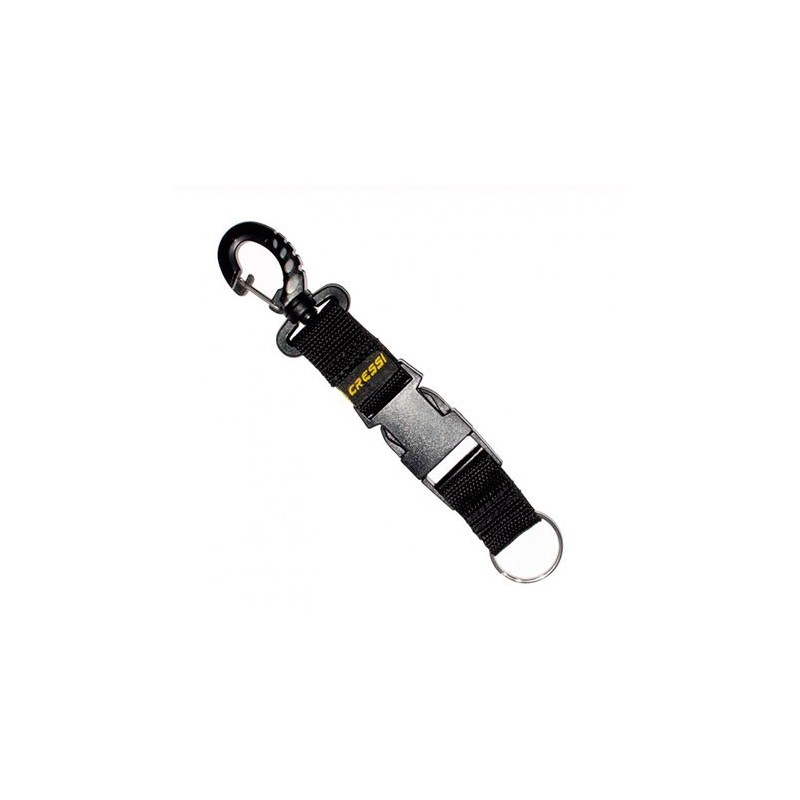 Se suministra con cincha con clip fastex, anilla y mosquetón para fijarlo en cualquier parte del equipo.