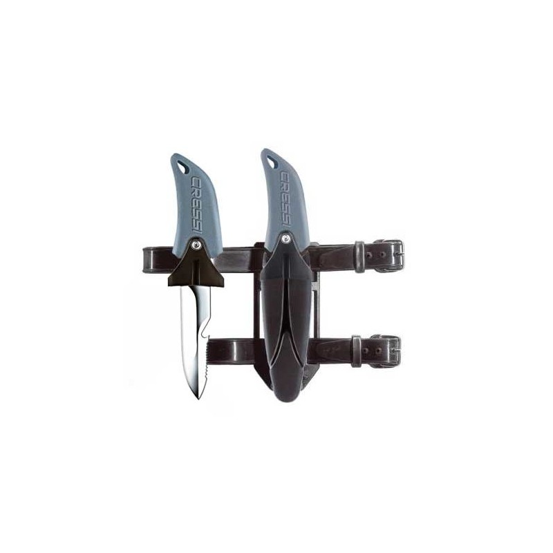 La empuñadura es minimalista, de sección muy plana, ergonómica y recubierta de goma antideslizante para un agarre seguro. La hoja está hecha de acero inoxidable 401 templado con recubrimiento de cromo duro, es excepcionalmente dura y resistente, y con una capacidad de corte excepcional. La duración de estas prestaciones está garantizada no ya por el afilado en sí sino por la calidad del material que garantiza la durabilidad del filo. La sección de la hoja es romboidal para una mayor resistencia a la flexión y la rotura. Una parte tiene un filo liso y la otra es parcialmente dentada y con un cortacabos. La versión Apnea puede adaptarse en la pantorrilla mediante tiras de goma con hebilla o en el cinturón. La versión Ara, para buceo se suministra con adaptadores para fijarlo en el chaleco (cinchas axilares) o en un latiguillo.