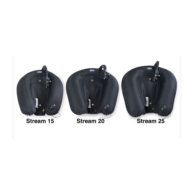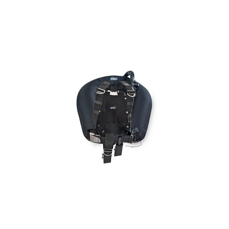Set para bibotella DTD compuesto por el ala Stream 15, 20 ó 25, arnés de cincha continua tipo DIR y backplate de acero en 3mmEscoge tu combinación de color de ala en los menús desplegables.