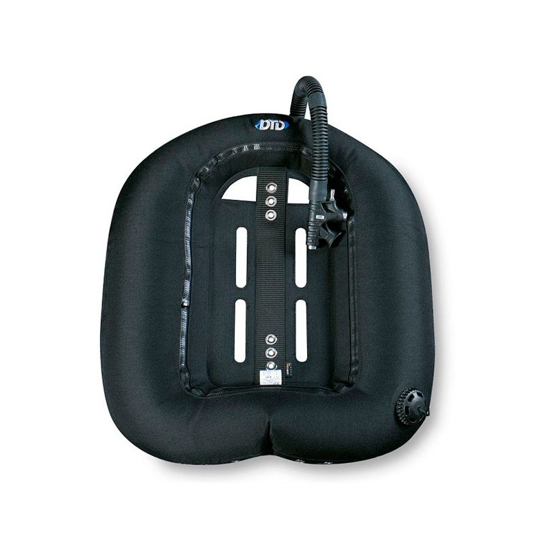 Ala circular específicamente diseñada para rebreathers. Poca capacidad en la parte superior, amplia y con grades aperturas en el centro para un perfecto y sencillo enrolamiento de los latiguillos.