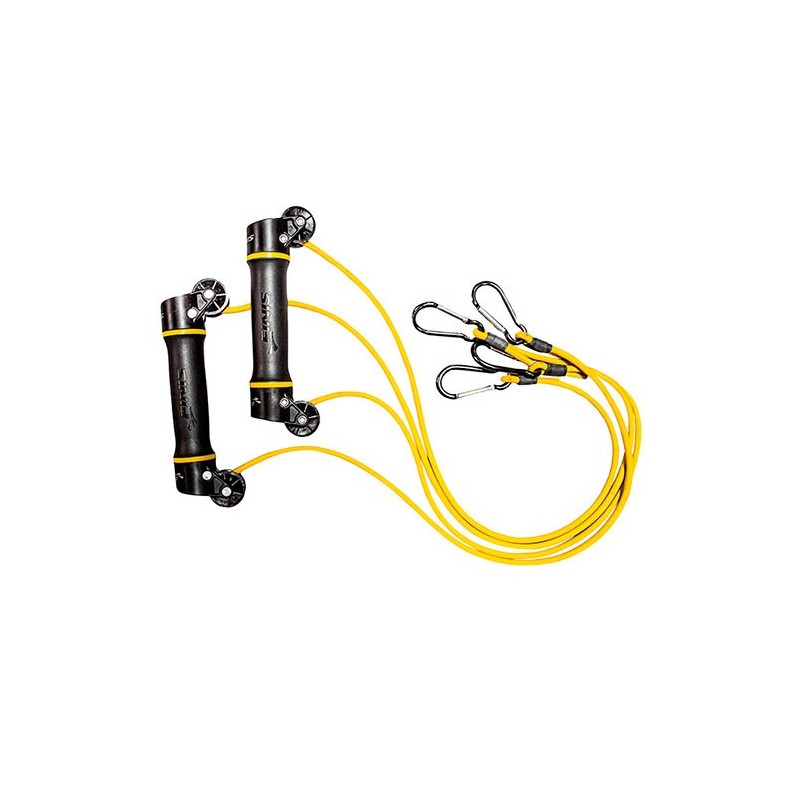 Engancha las gomas en dos puntos diferentes de una polea fija para permitir una gran variedad de ángulos y no limitar los movimientos Gomas FINIS Slide Dryland Trainerel entrenamiento de fuerza.