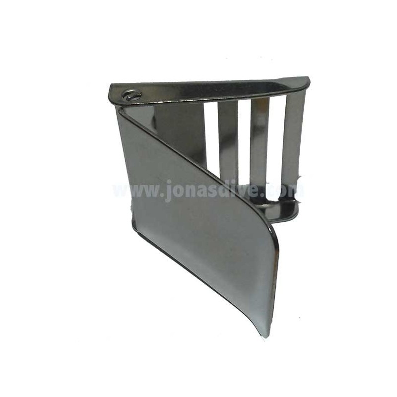 Un espacio de apertura/cierre entre los dientes y la base por donde corre la cincha, con la separación correcta para cerrar el cinturón firmemente pero sin dañarlo