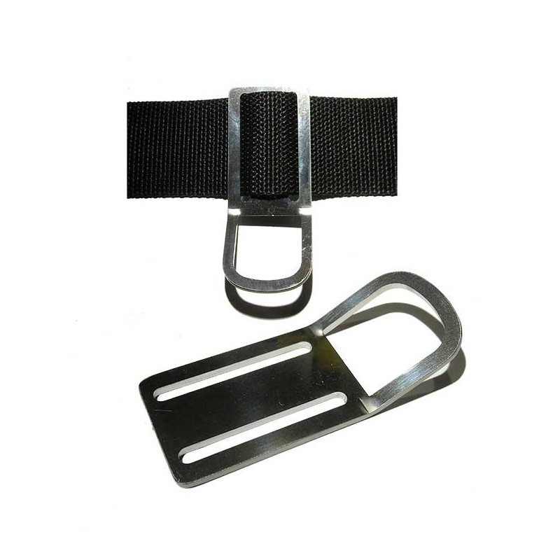 Anilla para anclaje en cinturón. La anilla está angulada para facilitar el clipar y desclipar. Fabricada en acero Inox 316L de 3mm de grosor.