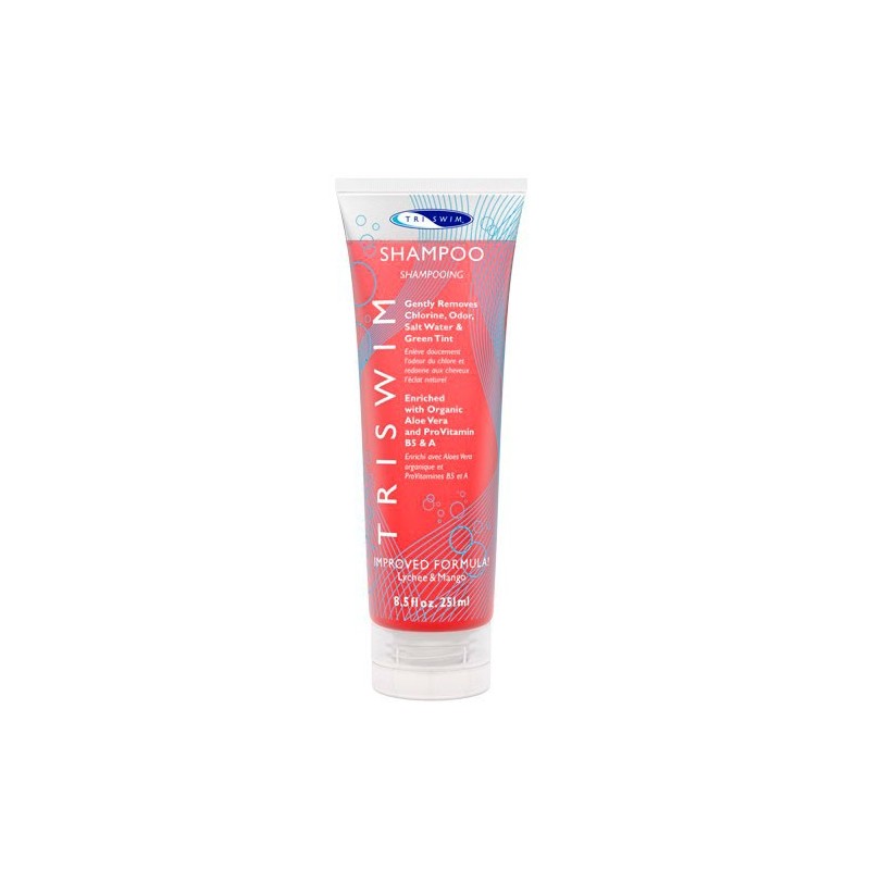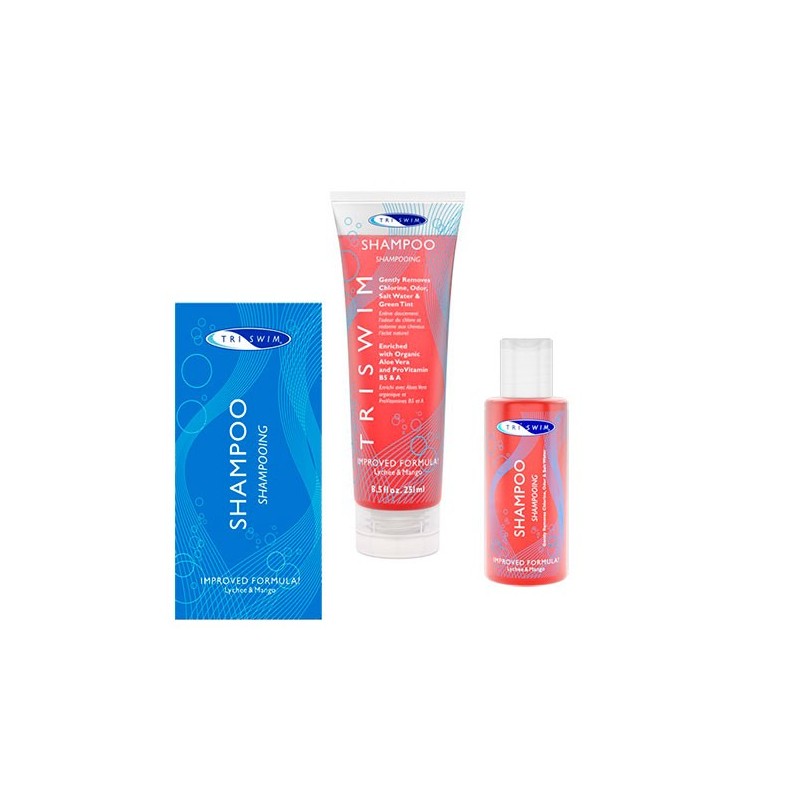 El champú anti-cloro de TRISWIM se puede usar en el cabello con permanente y con tratamiento de color, elimina el cloro, el bromo, el agua salada, olor químico, y elimina el "tinte verdoso" causado por el cobre. Restaura, hidrata y nutre, lo que ayuda a reconstruir el cabello fuerte y sano.