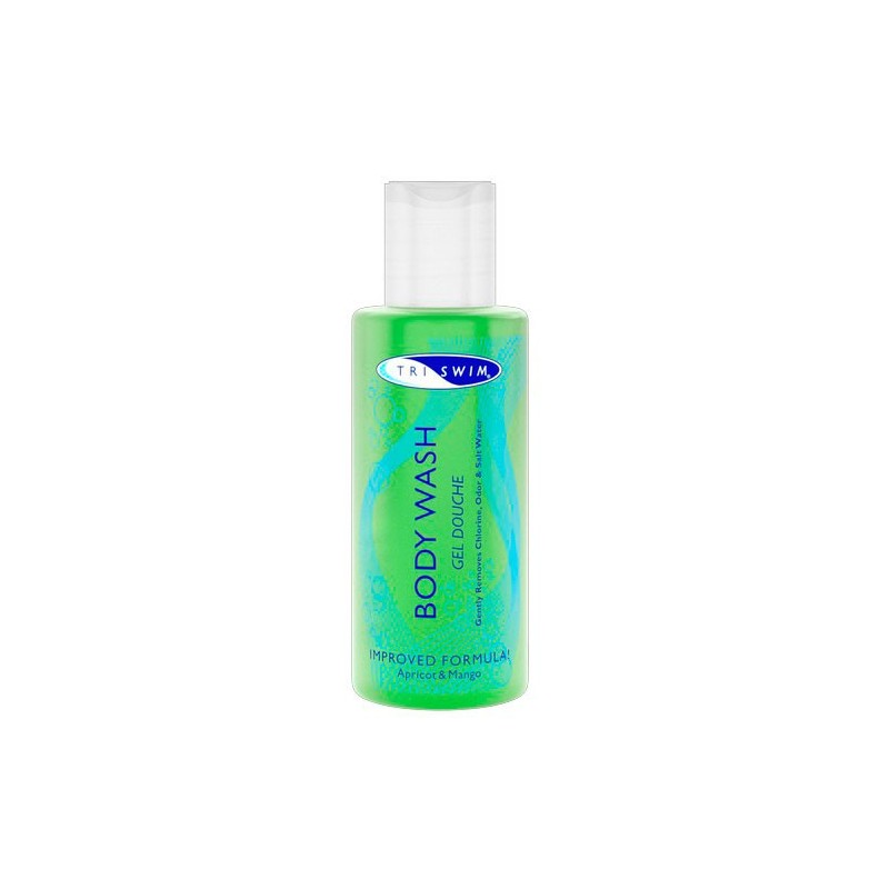 La fórmula anti-cloro de TRISWIM Body Wash elimina la sensación de picor y suaviza la piel seca, eliminando completamente el cloro, el bromo, el agua salada y el olor químico de la piel, a la vez que hidrata la piel.