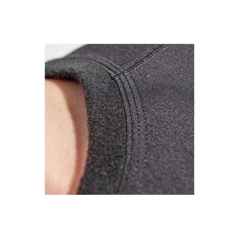 Cuenta con costuras planas para una mayor comodidad y se presenta muy largo para evitar la posibilidad que se separe de los leggings. Ideal para capa directa al cuerpo. Dispone de tiras de goma en las mangas para pasar los pulgares y colocarse el traje sin que las mangas de la prenda se nos vayan hacia arriba.