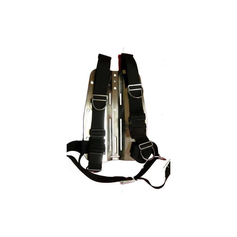 El arnés está compuesto por dos tipos distintos de cincha. Una cincha fuerte y rígida para la parte de los hombros, que es la que soporta el peso del equipo, y una cincha mas suave y maleable, para poder tensar fácilmente sin tener que realizar esfuerzos innecesarios, esta cincha que hace de tensora, es la misma que corre por detrás de la placa para convertirse en el cinturón y cierre. Pese a la suavidad de la cincha de la parte baja, es extremadamente fuerte y lo suficientemente rígida para ser cómoda a la hora de colgar complementos del cinturón. Una particularidad a destacar de este arnés, es que a diferencia de casi todos o todos los demás arneses zafables del mercado, este está montado SIN ninguna costura.